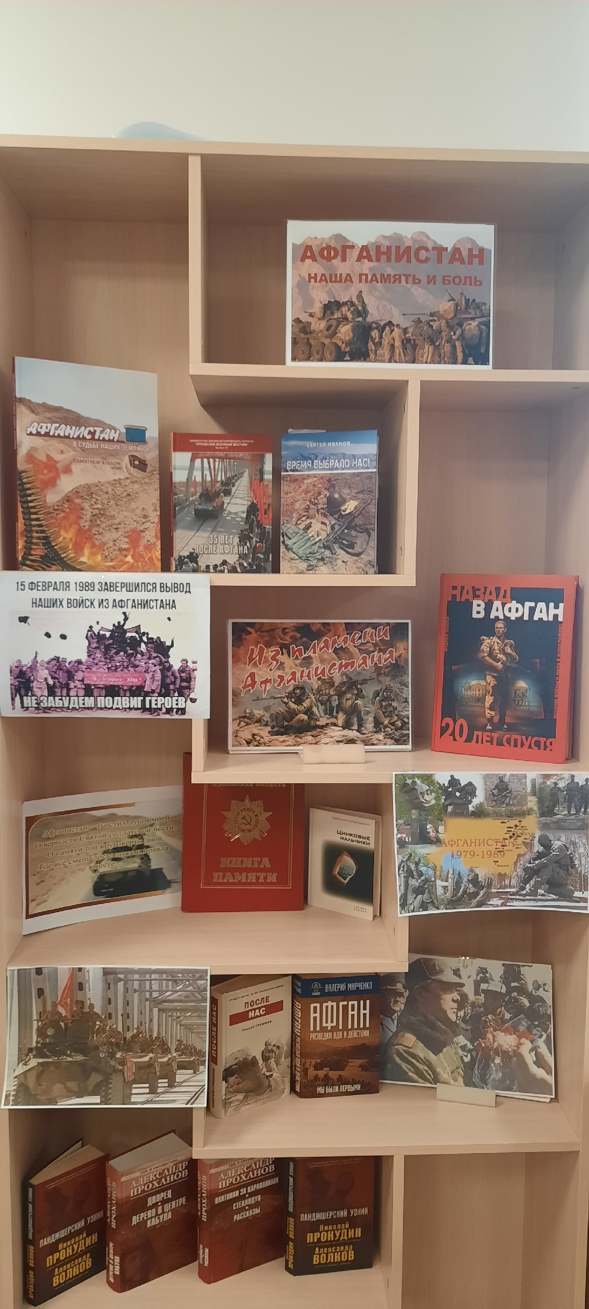 К этой дате в Центральной районной библиотеке им. Н.С. Лескова организована книжная выставка "Афганистан - наша память и боль", на которой представлены издания из фонда библиотеки, повествующие об Афганской войне (1979-1989), которая оставила глубокий след в истории страны, через которую прошло более 600 тысяч советских военнослужащих, в том числе и наши земляки.