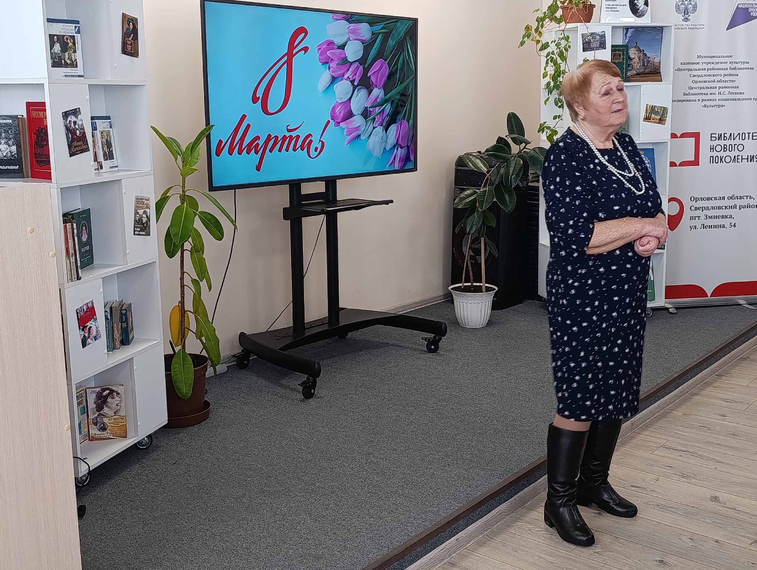 В заключение мероприятия для гостей провели обзор книжной выставки «Женские судьбы в книжном переплете» и увлекательную викторину «Женщины XX века». Завершили встречу теплыми поздравлениями и общим фотографированием. Атмосфера уюта способствовала живому общению, и гости покидали зал с нежеланием расставаться, сразу же наметив планы на следующую встречу.