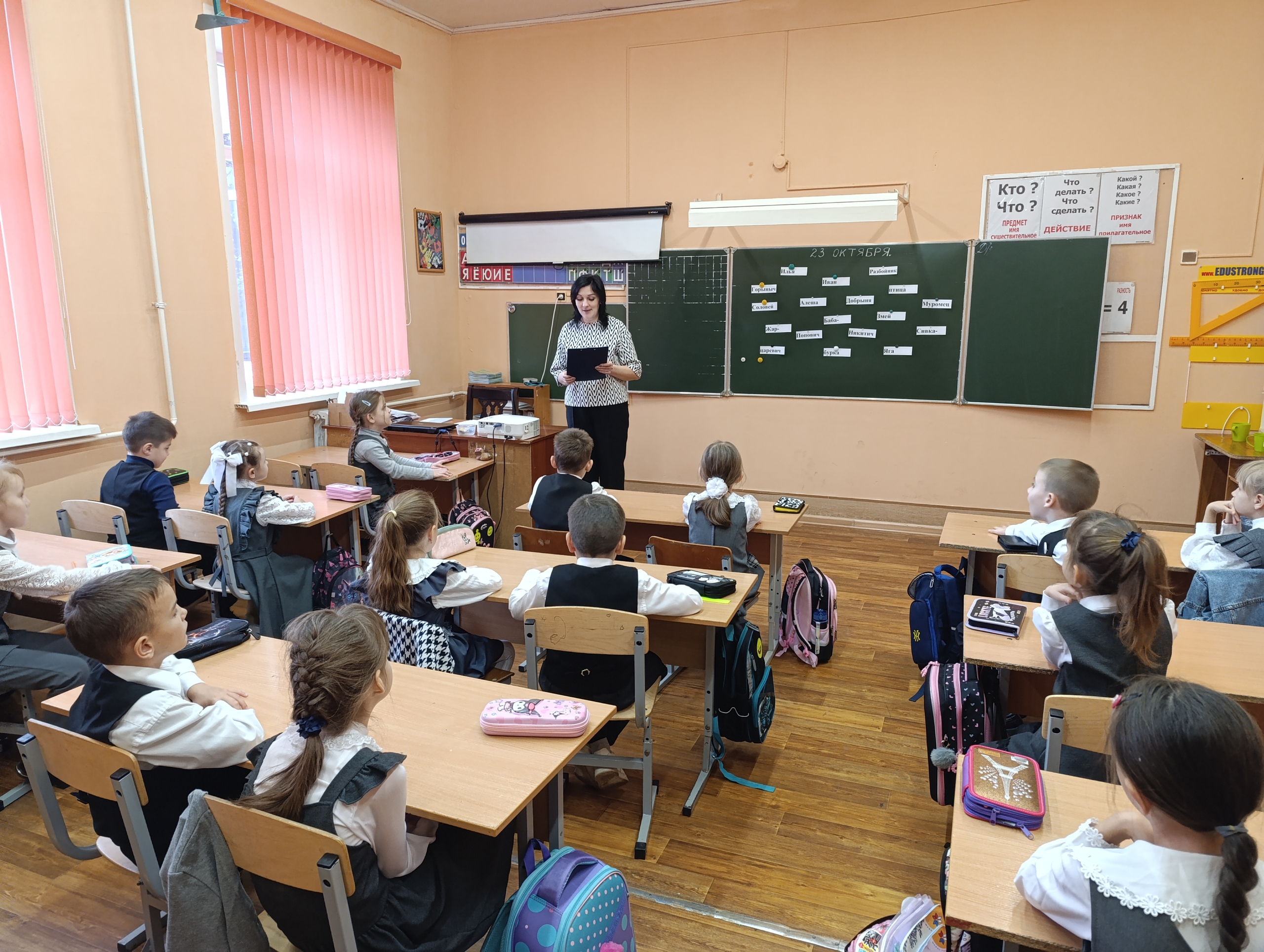 Библиотекарь Центральной детской библиотеки им. Е.А. Благининой, Елена Бибаева, провела библиотечный урок "Книга - лучший друг ребят!" для учеников 1 "Б" класса МБОУ "Змиевская СОШ", классный руководитель Гончар Анастасия Анатольевна.