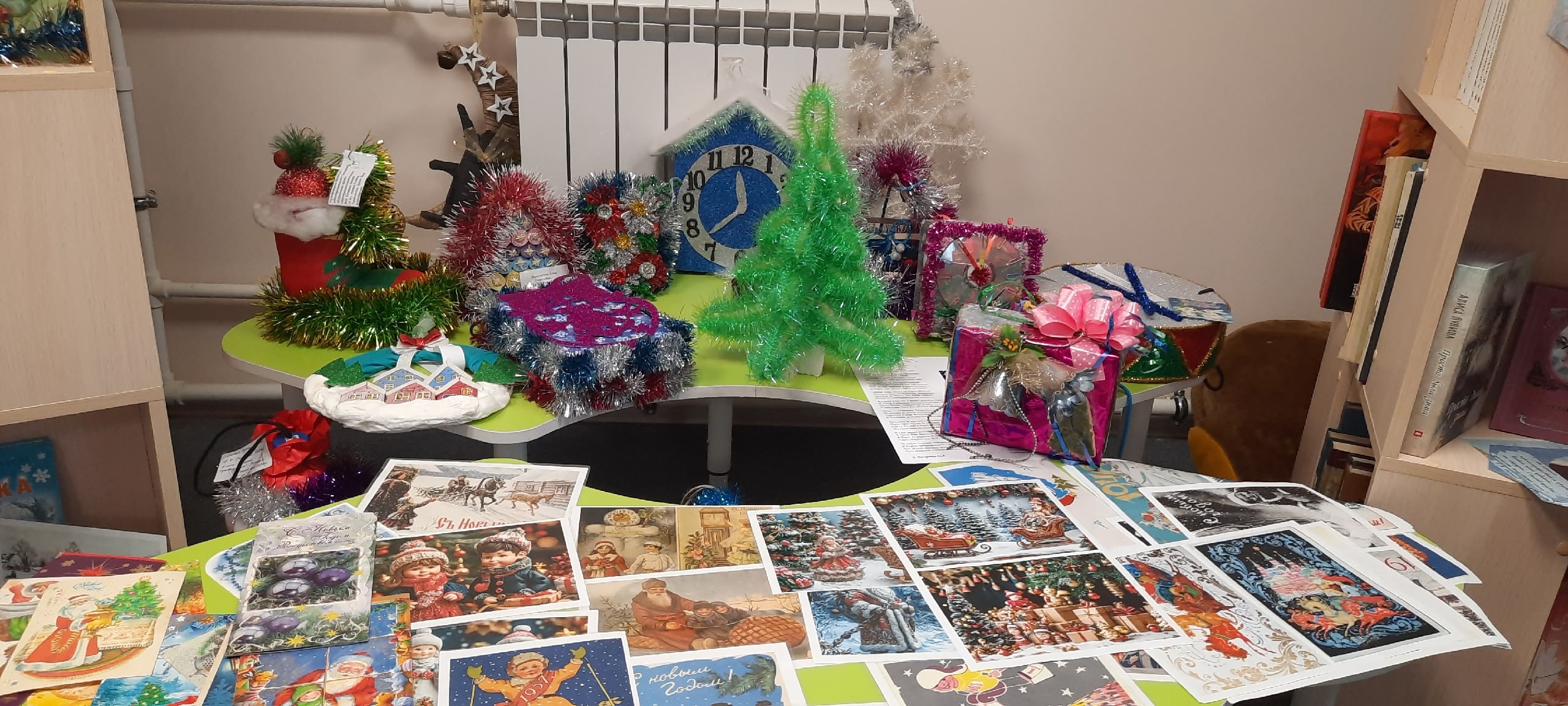 На абонементе вас также порадует выставка поделок и ретро-открыток, которые подарят особенное праздничное настроение .