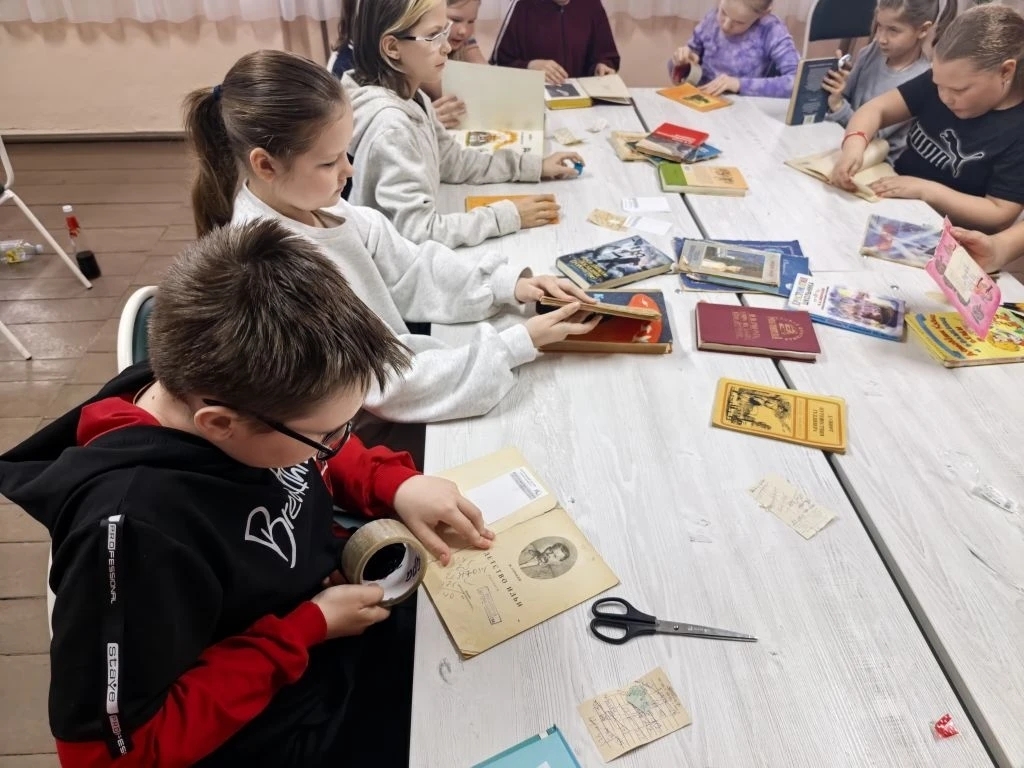 Кто сказал, что старые, потрепанные страницы не могут ничего рассказать читателям? Очень даже могут, тем более наши волонтеры помогли таким книжкам и подарили им вторую жизнь. Вооружившись скотчем, ножницами, ластиком и клеем, ребята буквально «вылечили» десятки книг. Они стирали надписи, подклеивали страницы и приводили в порядок обложки.